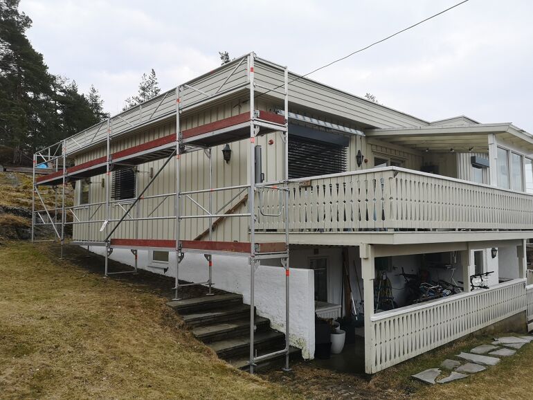 Vi er godkjente stillasbyggere, og vi leier ut stillas til både bedrift og privat! Oppsatt stillas er fint til blant annet takjobber og maling av fasader.